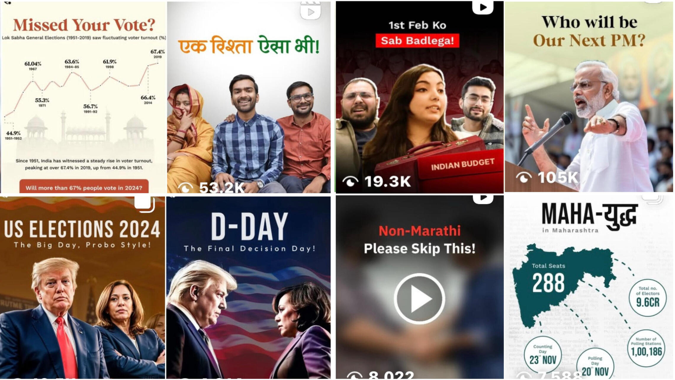 I’ve written and shot 300+ videos for Probo, covering topics across the economy, current affairs, crypto, and news. Several of these reels went viral, reaching up to 1 million views.